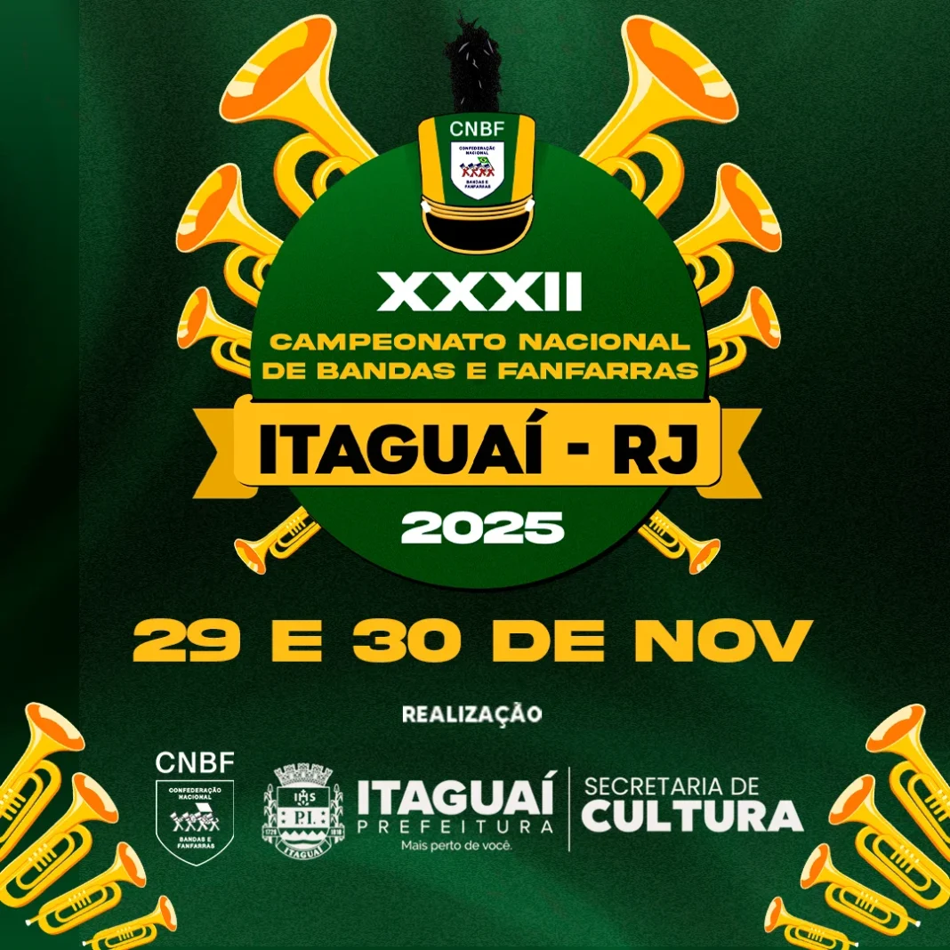Nos dias 29 e 30 de novembro de 2025, a cidade de Itaguaí (RJ) será palco da 32ª edição do Campeonato Nacional de Bandas e Fanfarras, promovido pela Confederação Nacional de Bandas e Fanfarras (CNBF) em parceria com a Prefeitura Municipal de Itaguaí e a Secretaria Municipal de Cultura.